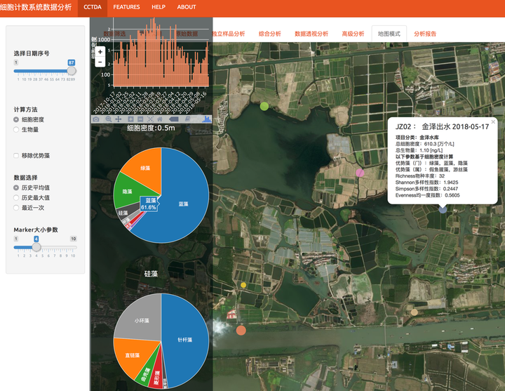 在云平台中基于用户需求定制藻类分析,获取实时藻类数据,优势藻种类、有害藻种类、不同藻种的时空分布及趋势分析;定制报告。